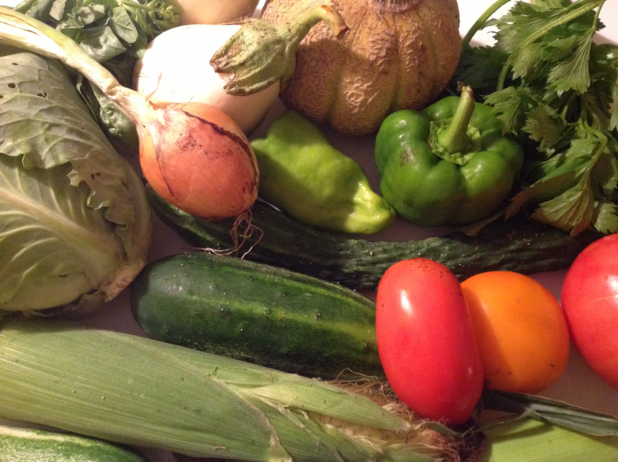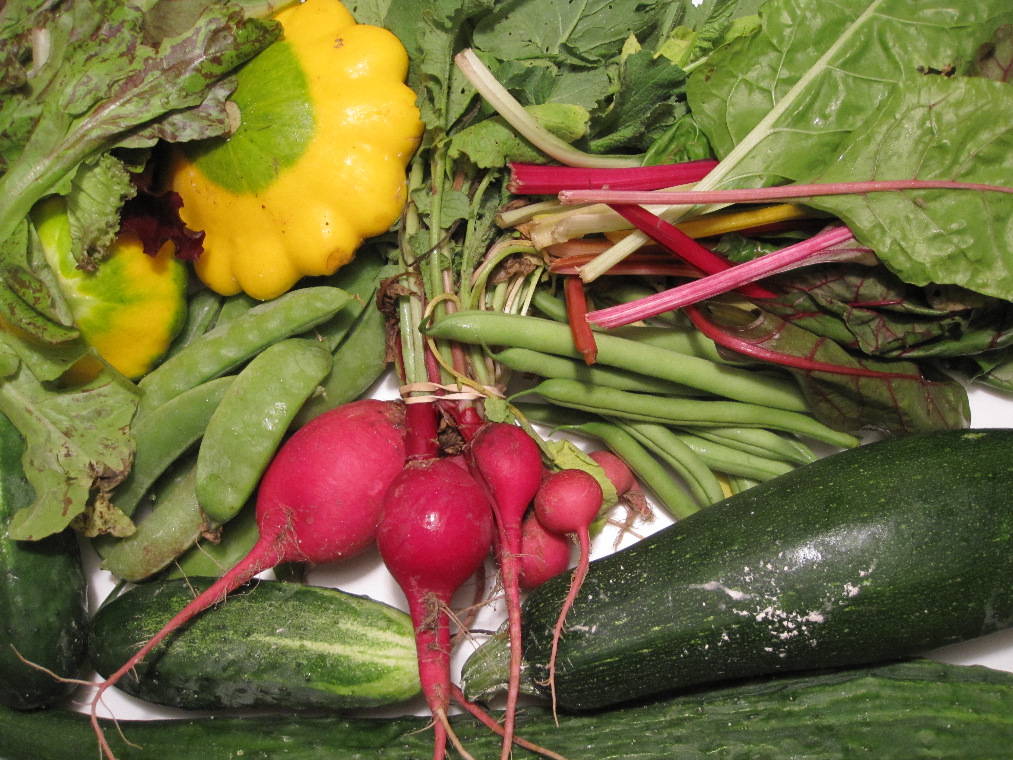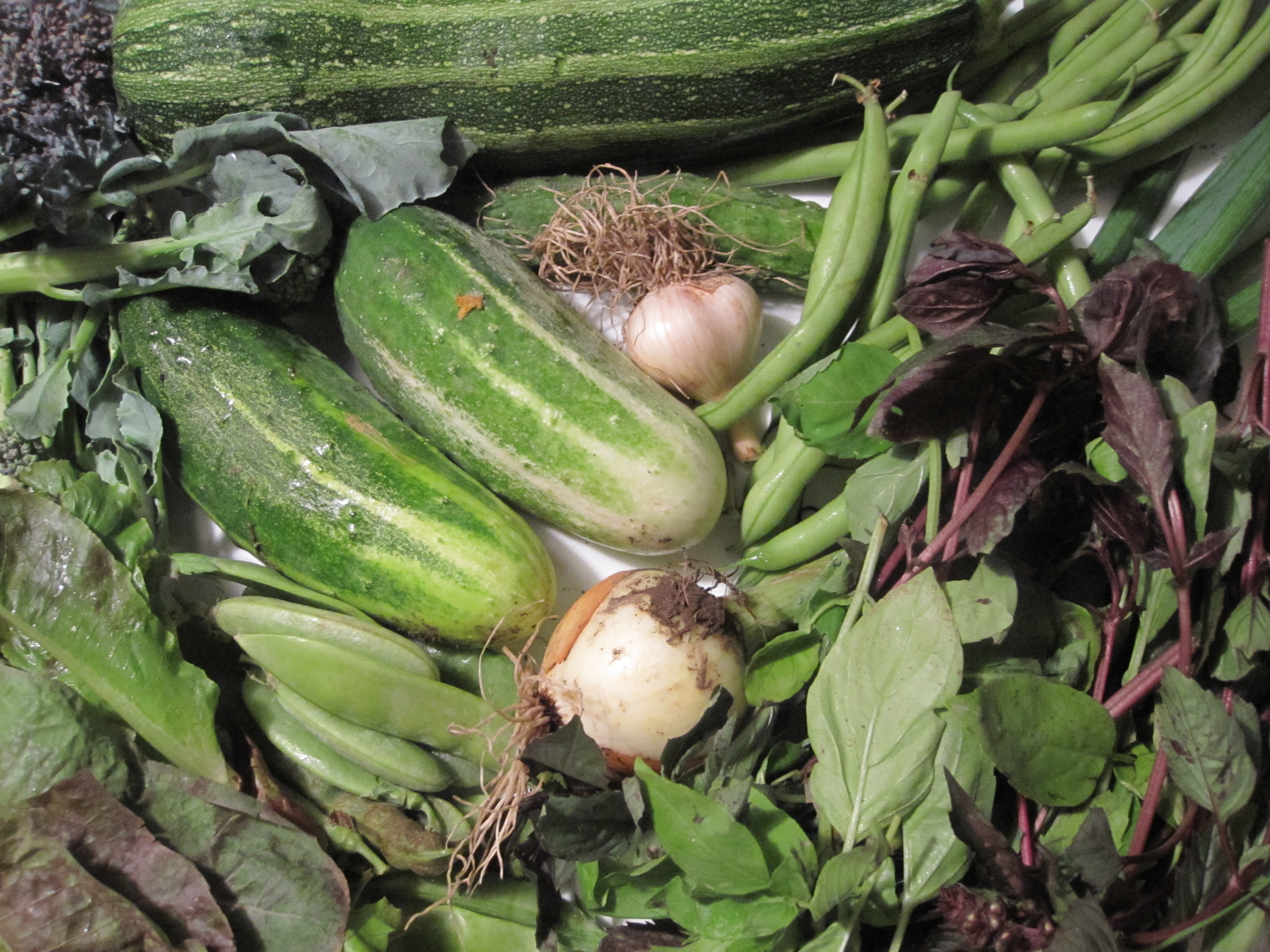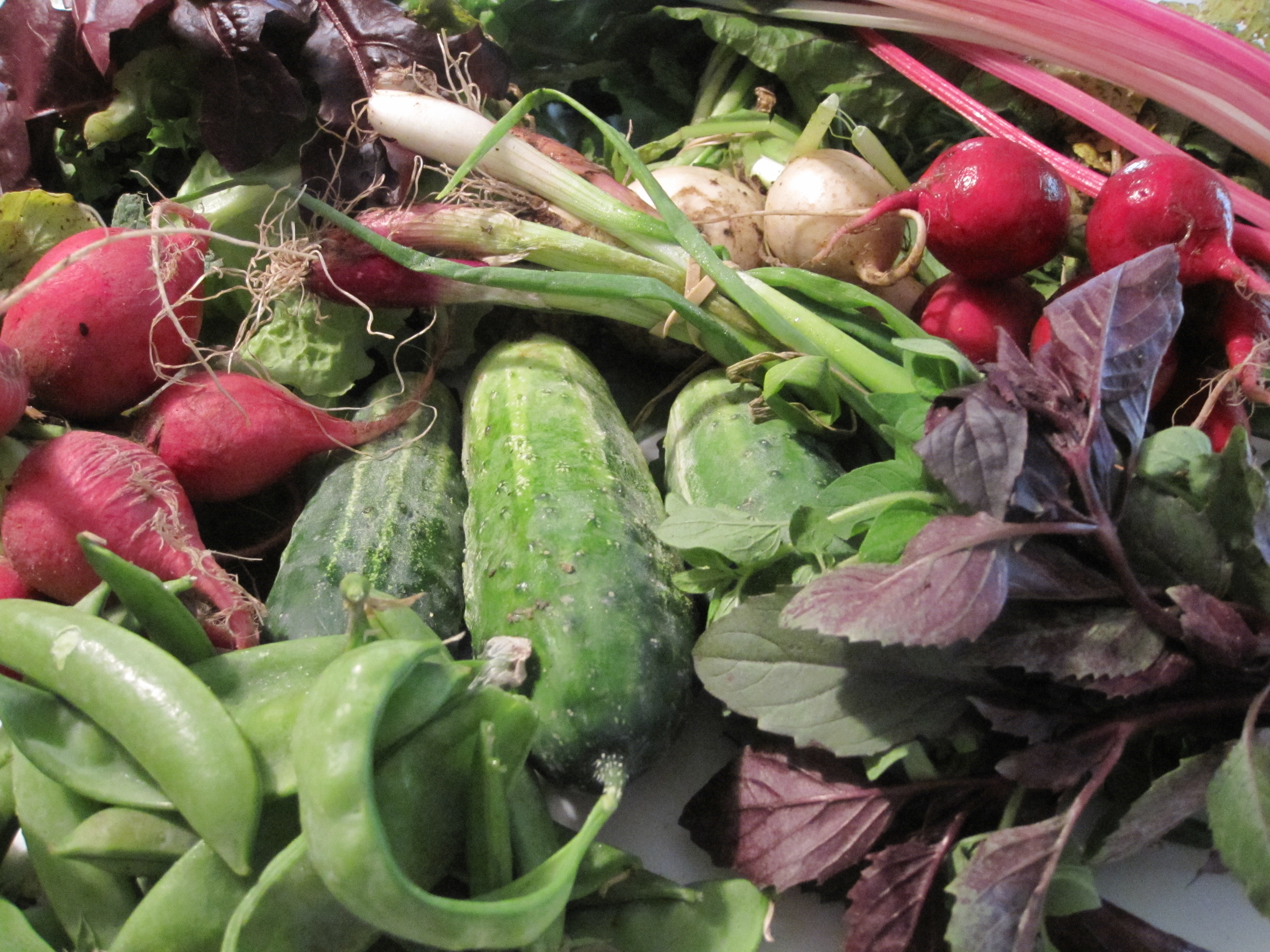 Three days and the CSA is almost 100 percent gone. Just one cucumber is left, and I’ve been using it as a side dish for lunches. What a treat this was for us! Now, where can I get Mike and Darci to go next week?